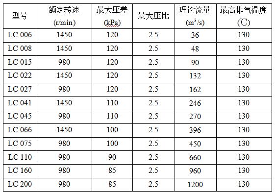1.1羅茨式壓縮機(jī)型號(hào)參數(shù)表