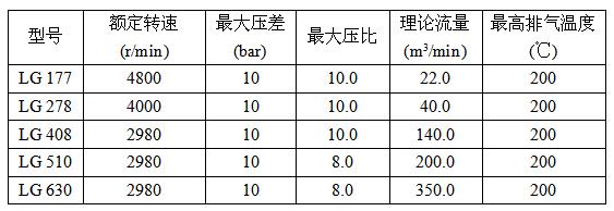 目前,江蘇樂(lè)科節(jié)能科技股份有限公司的羅茨式壓縮機(jī)主要用于MVR、自回?zé)峋s及等梯度降溫結(jié)晶領(lǐng)域,螺桿式壓縮機(jī)主要用于自回?zé)峋s及乏汽增壓領(lǐng)域。根據(jù)流量需求具備系列化產(chǎn)品的設(shè)計(jì)及制造能力,各個(gè)型號(hào)基本參數(shù)如下表所示。