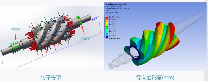 同時,基于對轉(zhuǎn)子熱變形的合理預(yù)測,我司具備完善的定制化機(jī)型間隙設(shè)計規(guī)范,在滿足機(jī)組安全運行的基礎(chǔ)上,內(nèi)泄漏較小,運行效率高。下圖所示為基于幾何特性計算結(jié)果進(jìn)行的有限元分析,及轉(zhuǎn)子變形量預(yù)測。