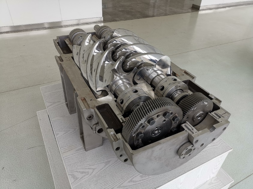 目前,國內(nèi)市場上雙螺桿空氣壓縮機(jī)和制冷壓縮機(jī)已有廣泛應(yīng)用,生產(chǎn)制造的廠家較多,能效比較高,性能可靠。但這兩種雙螺桿壓縮機(jī)均采用向壓縮腔內(nèi)噴油的結(jié)構(gòu)型式,以大大減小設(shè)計、制造難度。用于化工行業(yè)的工藝壓縮機(jī),其輸送介質(zhì)往往具有腐蝕性,不允許輸送介質(zhì)含油,對安全性、平穩(wěn)性要求較高,因此雙螺桿工藝壓縮機(jī)與傳統(tǒng)意義上的雙螺桿空氣壓縮機(jī)、制冷壓縮機(jī)等具有本質(zhì)不同。其在結(jié)構(gòu)上,不允許轉(zhuǎn)子間直接接觸(因為不噴油),需要引入同步齒輪精確控制轉(zhuǎn)子運轉(zhuǎn);由于沒有潤滑油密封各個工作間隙,對其設(shè)計、制造精度有更高的要求,否則會因為內(nèi)漏氣而導(dǎo)致性能急劇下降;輸送流量遠(yuǎn)大于普通螺桿壓縮機(jī),以滿足工藝需要,轉(zhuǎn)子直徑普遍達(dá)到400mm以上,遠(yuǎn)大于常規(guī)噴油壓縮機(jī)的350mm以下;對安全性要求較高,廣泛采用雙端面干氣密封等高端密封元件,因此要求壓縮機(jī)整機(jī)振動控制比較嚴(yán)格,防止密封損壞等惡性事故。